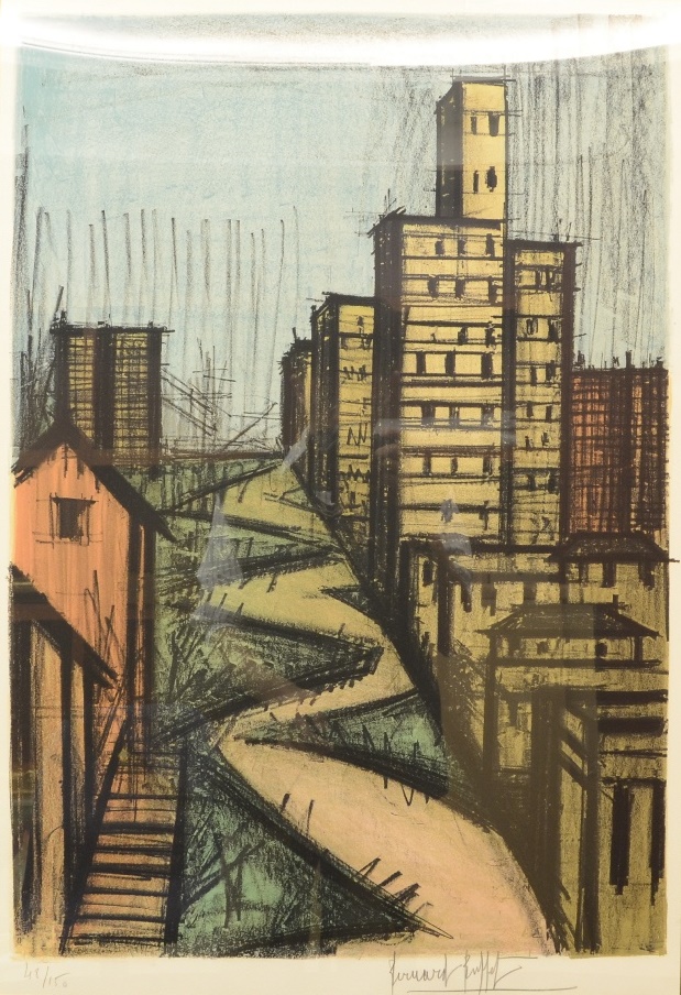 畢費在1955年畫出這座全世界最繁榮的都會,先前也曾畫過巴黎街景,呈現不同文明裡的不同城市風貌。畢費的油畫編年目錄(catalogue raisonné)中形容:「畢費用宏偉的視野展示,更接近真實的一座摩天巴別塔(Babel Tower)的非人性大都會,虛無之中、永遠灰濛濛的天空底下懸掛著幾座青銅橋。」(…il exposait ses vues grandiose, plus vrai que nature, d’une mégapolis déshumanisée par ses tours de Babel grate-firmament et ses ponts suspendus dans le néant qui restent de bronze sous leur cieux à jamais plombés.)法國文學評論家皮耶.德.布阿德福爾(Pierre de Boisdeffre)曾說:「不管願不願意,我們必須了解貝納.畢費是我們這個時代的重要見證人。」(”Bon gré mal gré, nous avons du reconnaître en Bernard Buffet un témoin essentiel de notre temps”)外國評論家的言論向來苛刻,即便如此,他們也不得不正視,畢費的藝術所代表的時代意義與價值。
