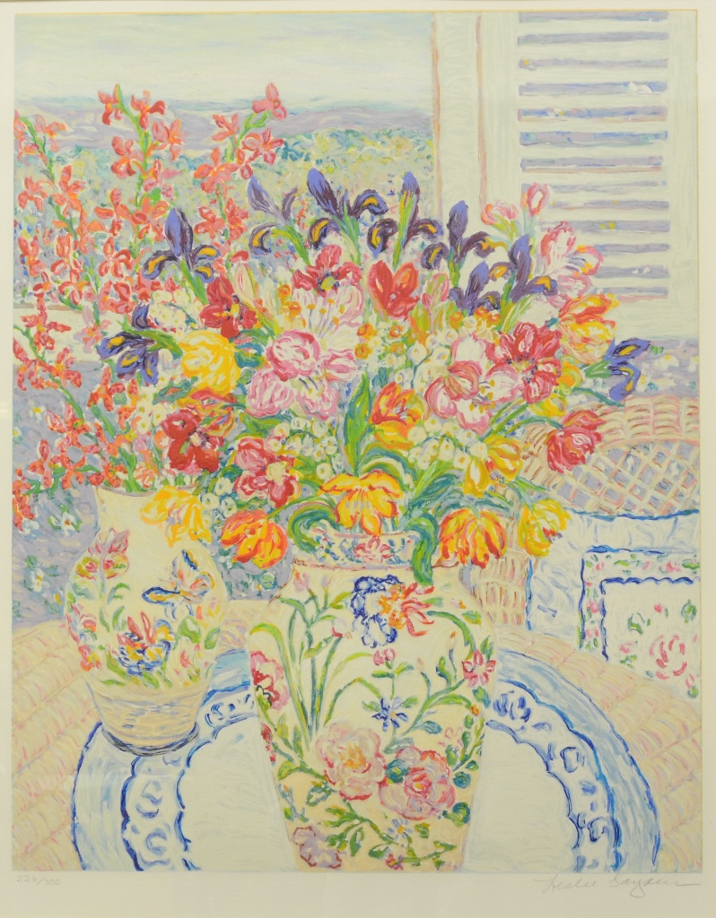萊斯利是一個自學成才的藝術家,她的靈感來自色彩和自然。她開始認真作畫的第一幅畫是描繪花朵,在1970年的時候薩尤爾租了一間小小的平房,壯觀的景觀可到懸崖上俯瞰大海,在聖地牙哥期間,她的畫作變成以沉醉的顏色、形式來描繪大自然。