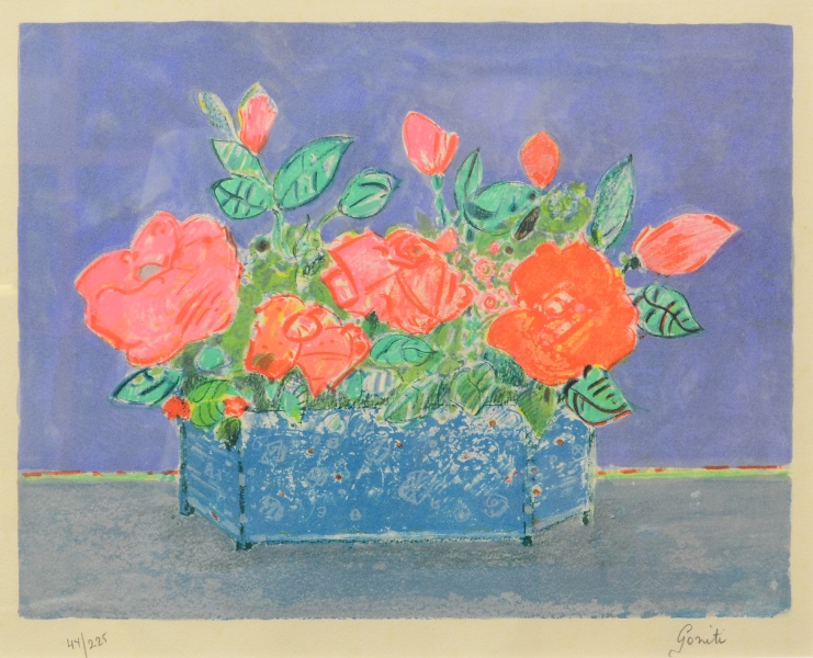 戈里帝醒目顏色的相互作用被描繪顯著又有著截然不同寧靜的主題。他的地中海景觀,巴黎的街頭,他的花卉圖案和貼心的內飾掛在遍及歐洲,美國和亞洲的私人收藏。